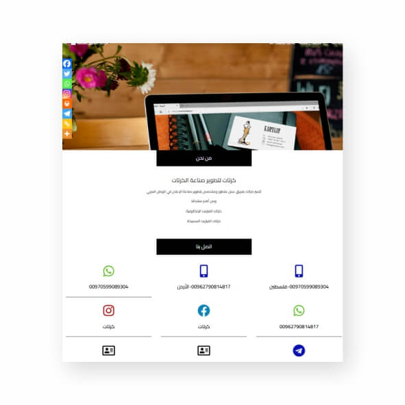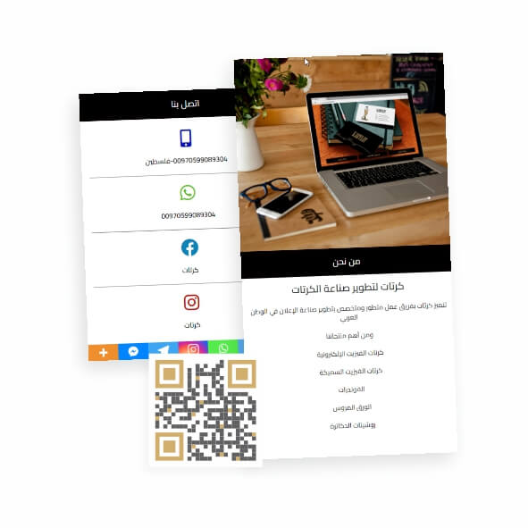 شرح الهوية الرقمية الفلسطينية. هي عبارة عن كرت إلكتروني فلسطيني 100% نماذج لكروت إلكترونية (هويتك الرقمية) الفكرة أول هوية بصرية فلسطينية تتناول السوق الفلسطيني على حسب التخصصات, و تقدم لكل منشأة كيو آر كود واحد لجميع مواقع التواصل الإجتماعي. الهوية الرقمية الفلسطينية و هي عبارة عن كيوآر كود لكرت إليكتروني ضمن دليل خاص بقطاعات السوق الفلسطيني. و المعن و الصناعات , و غيرها. الدليل التجاري بعد تقسيم السوق لقطاعات متخصصة, يتم توفير دليل تجاري لكل تخصص , ينقسم على حسب أقسام التخصص, مثل (أطباء الأسنان, و الاطباء و و الصيادلة, الخ…) محرك البحث في كل دليل محرك بحث متخصص مقسم على حسب المناطق و على حسب اقسام التخصص, أو الاثنين معا . متجرك أو عيادتك أونلاين يقدم الموقع للتجار خدمة المتجر الاليكتروني مع كيو آر كود يؤهل المستهلك للوصول للمتجر بمجرد مسح الكيو ار كود. الرابط الالكتروني يقدم الموقع للتاجر رابط إلكتروني عبارة عن موقع اليكتروني من صفحة واحدة بدومين فرعي, للوصول للمتجر الالكتروني مباشرة. الكيو آر كود كما يقدم الموقع للتاجر كيو آر كود يؤهل المستهلك من الوصول للمتجر الاليكتروني بمجرد مسح الكيو آر كود . مواقع التواصل الإجتماعي من خلال الكيو آر كود, أو الرابط الالكتروني يتمكن المستهلك من الوصول لجميع مواقع التواصل الاجتماعي الخاصة به بمكان واحد و بكبسة زر. خاصية المشاركة من أهم مزايا المتجر الإلكتروني هو سهولة مشاركة بيانات المتجر مع الآخرين أو على المجموعات أو غيرها بكبسة زر من داخل المتجر.. إمكانية التعديل يتيح الموقع للتاجر إمكانية التعديل من خلال إدارة الموقع على بياناته مثل إضافة رقم هاتف أو تعديل الموقع أو عنون الفيسبوك .. و غيرها. سوق المنتجات عبارة عن سوق إفتراضي, يمكن التجار من بيع منتجاتهم مباشرة للمستهلكين و قبض الثمن من خلال بوابة الدفع الإلكتروني فيزا . الدفع الالكتروني يقدم الموقع خدمة الدفع المباشر بالفيزا والماستركارد والبي بال . منطقة الخصومات يستطيع التاجر أن يقدم للمستهلكين عروض حقيقية على منتجاته سواء خصم على السعر أو تقديم خدمات إضافية تمويل متواصل من خلال سياسية تمويل ممنهجة تتضمن اعلانات عن الموقع على مواقع التواصل الاجتماعي يحقق الموقع انشاراً اوسع. البيع بالعمولة يتبع الموقع احدث البرامج التسويقية (Affılıate marketıng) والتي تمكن الجمهور من بيع منتجات التجار مقابل نسبة واضحة . الدورات يؤمن الموقع للمشتركين دورات متخصصة في التسويق الالكتروني, ونظام البيع بالعمولة, و كذلك إنشاء الاسواق الالكترونية.